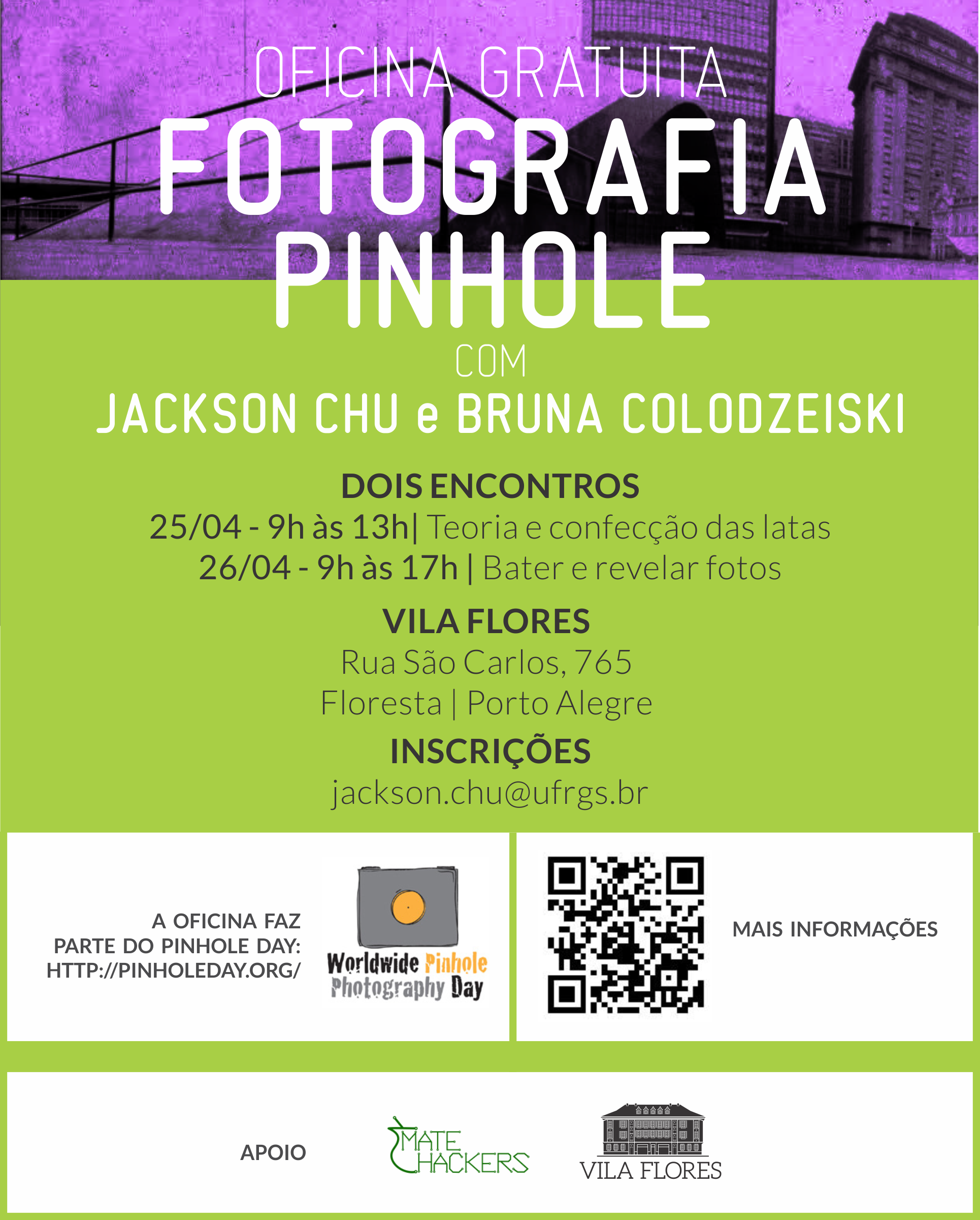 Inscrição via mensagem com Jackson Chu ou email jackson.chu@ufrgs.br