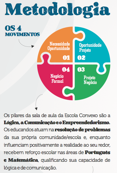 A Convexo desenvolveu uma tecnologia social que utiliza a resolução de problemas como base do aprendizado. Como consequência, essa tecnologia possibilita melhora no aprendizado curricular e desenvolvimento social e econômico da região. A metodologia é baseada em dois princípios essenciais: