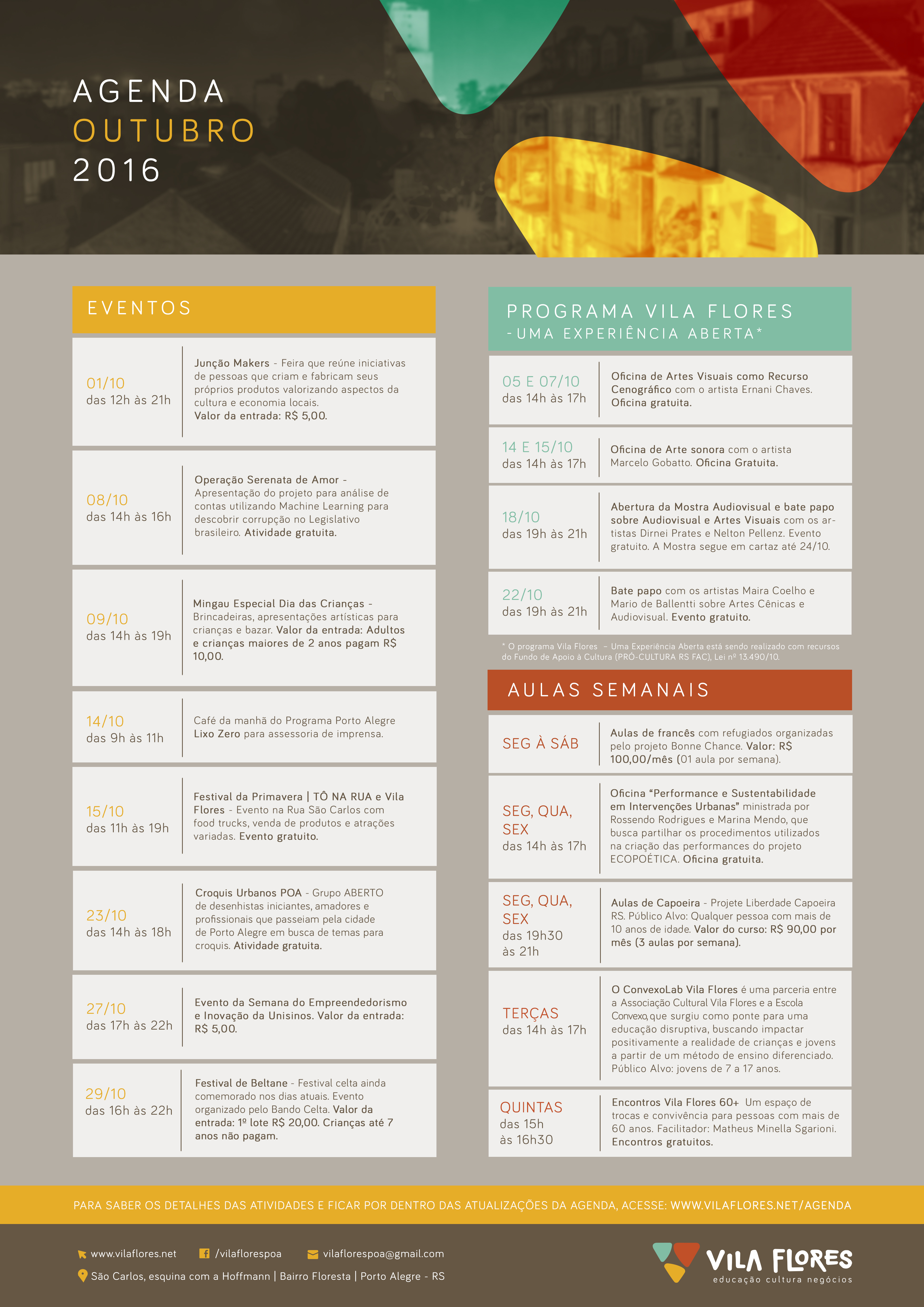 AtividadesAgenda Outubro 2016 setembro 30, 2016outubro 7, 2016 Vila Flores Clique na imagem para ampliar. Compartilhe isso: Compartilhar no X(abre em nova janela) 18+ Compartilhar no Facebook(abre em nova janela) Facebook Curtir Carregando... Relacionado