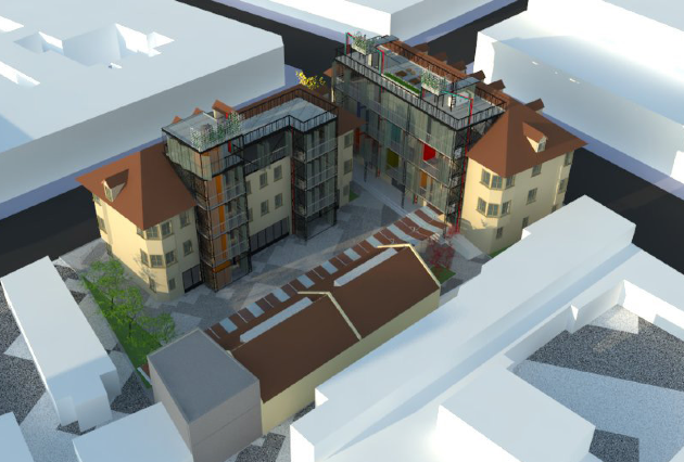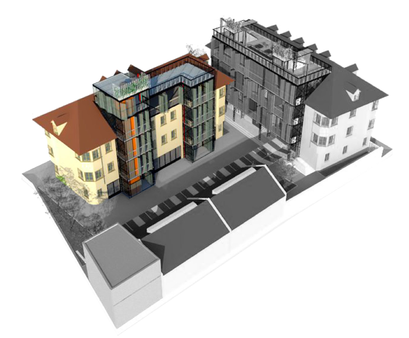 Para isso o tomamos como premissa de projeto o restauro das fachadas externas, bem como as bay-windows e das aberturas originais de madeira. O objetivo é ter a conformação da quadra, os acessos e passeios, assim como havia pensado o arquiteto Joseph Lutzenberger, aproveitando a boa orientação, insolação e ventilação.